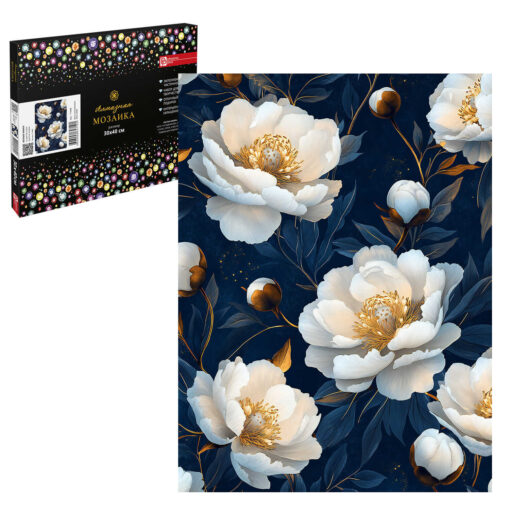 Алмазная мозаика 30*40см Белые маки с частичной выкладкой 11цв картонная коробка арт. 71440
