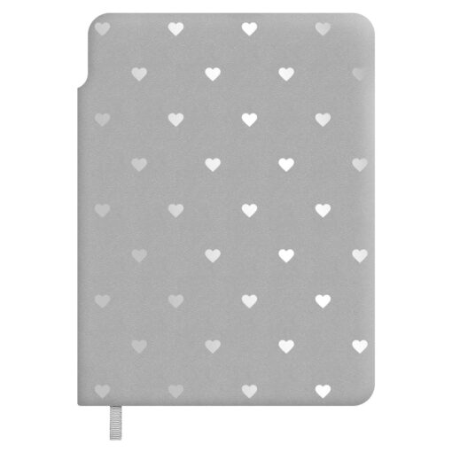 Записная книжка ESCALADA, А6, 96 л., арт. 71044/ 20 ЗАМША СЕРЫЙ (кожзам: 108х148 мм, мягкий переплёт, запаянный край, материал обложки: искусственная кожа «Замша»; способ крепления блока: ниткошвейный; декор: тиснение фольгой; вн. блок: 96 л., белый офсет 70 г/м², печать в одну краску (линия), справочный материал: нет; перфорация углов блока: нет; закладка/-и: одно ляссе, каптал: есть; форзац: печать пантоном, особенности: место для хранения ручки в корешке; персонализация возможна: нет; индивидуальная упаковка: ПЭТ-пакет)