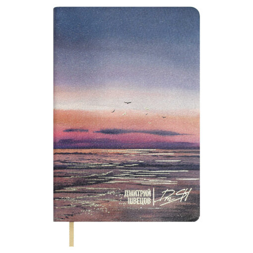 Записная книжка ESCALADA, #ДМИТРИЙ ШВЕЦОВ, А6, 96 л., арт. 70741/ 20 МОРСКОЙ ПЕЙЗАЖ (кожзам: 100х148 мм, мягкий переплёт, материал обложки: искусственная кожа «Наппа»; способ крепления блока: ниткошвейный; декор: печать полноцветная, тиснение фольгой; вн. блок: 96 л., белый офсет 70 г/м², печать в одну краску (линия), справочный материал: нет; перфорация углов блока: нет; закладка/-и: одно ляссе, каптал: есть; форзац: печать в одну краску, особенности: на обложке записной книжки использованы живописные работы профессионального художника-акварелиста – Дмитрия Швецова, чьи воздушные и невесомые картины удивительно точно передают стремительность и мимолетность момента; персонализация возможна: нет; индивидуальная упаковка: промостикер + ПЭТ-пакет)