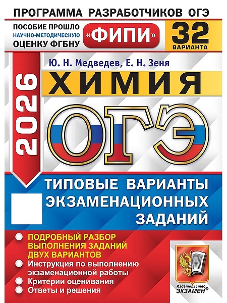 ОГЭ ФИПИ 2026. 32 ТВЭЗ. ХИМИЯ. 32 ВАРИАНТА. ТИПОВЫЕ ВАРИАНТЫ ЭКЗАМЕНАЦИОННЫХ ЗАДАНИЙ