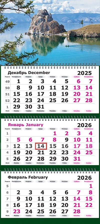 Календарь квартальный 3-х блочный 2026 МИНИ Озеро Байкал. Шаманка 190*465