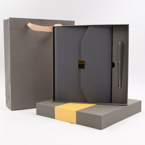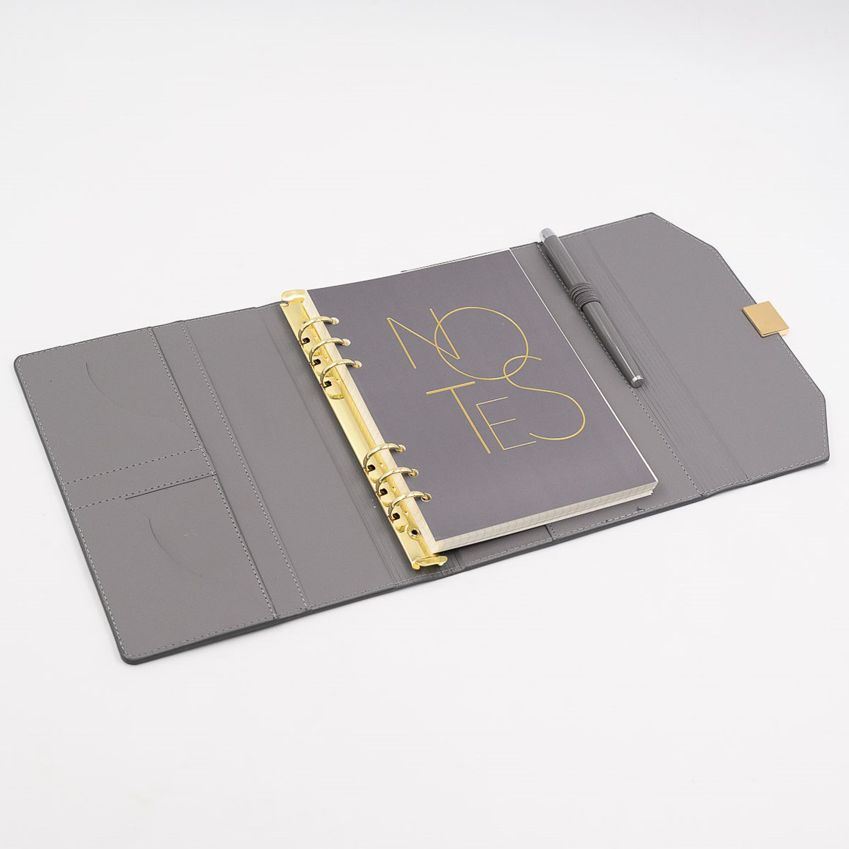 Ежедневник А5 иск.кожа на кольцах+ручка 90л BUSINESS СЕРЫЙ в подар.упак. арт. 9424