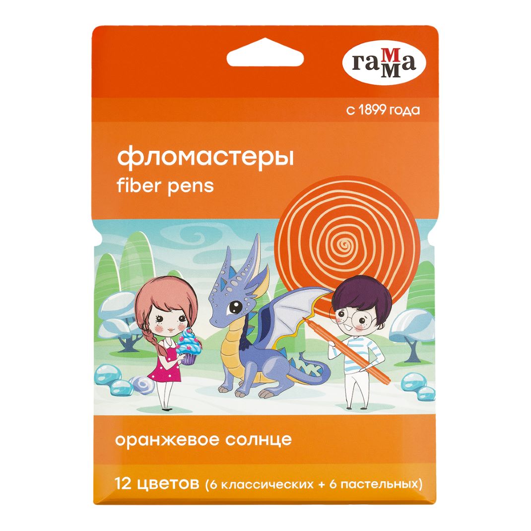 Фломастеры 12цв Гамма (6 обычных + 6 пастельных цветов) «Оранжевое солнце» смываемые картон упак. 9526