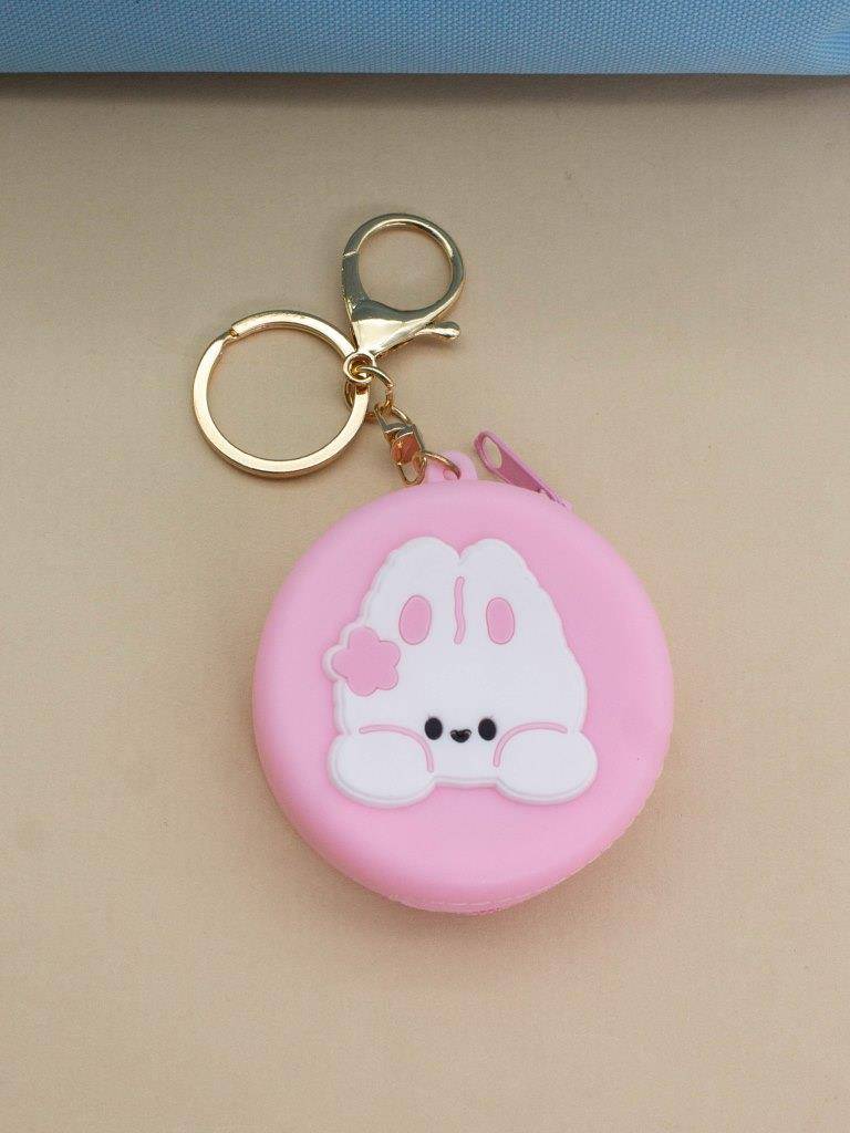 Брелок-кошелек с карабином силиконовый Зайка розовый 9203