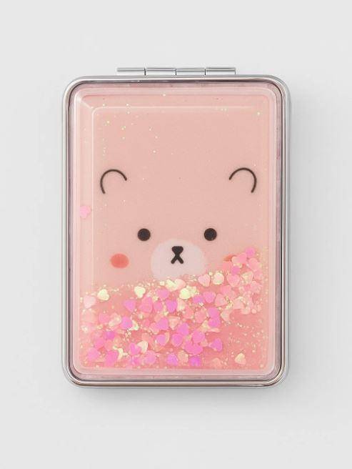 Зеркало карманное складное с блестками Animal bear, pink 5175