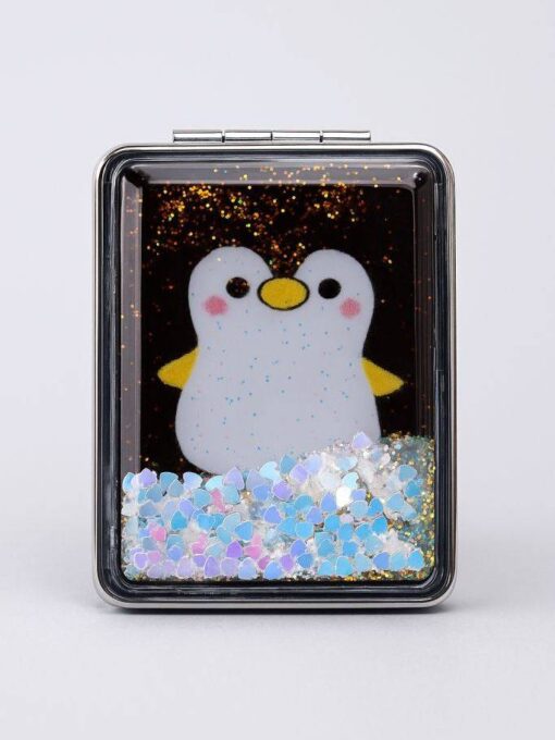 Зеркало карманное складное с блестками Animal penguin, black 5199