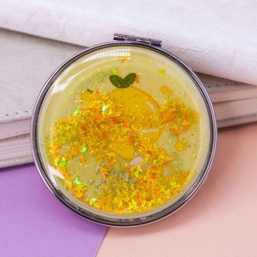 Зеркало карманное складное с блестками Fuit lemon, yellow 7926
