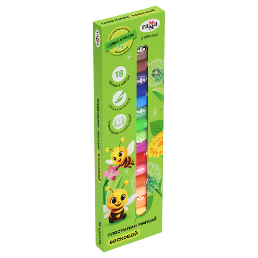 Пластилин 18 цв 216г восковой мягкий Гамма «Пчелка» со стеком, картон. уп 0647