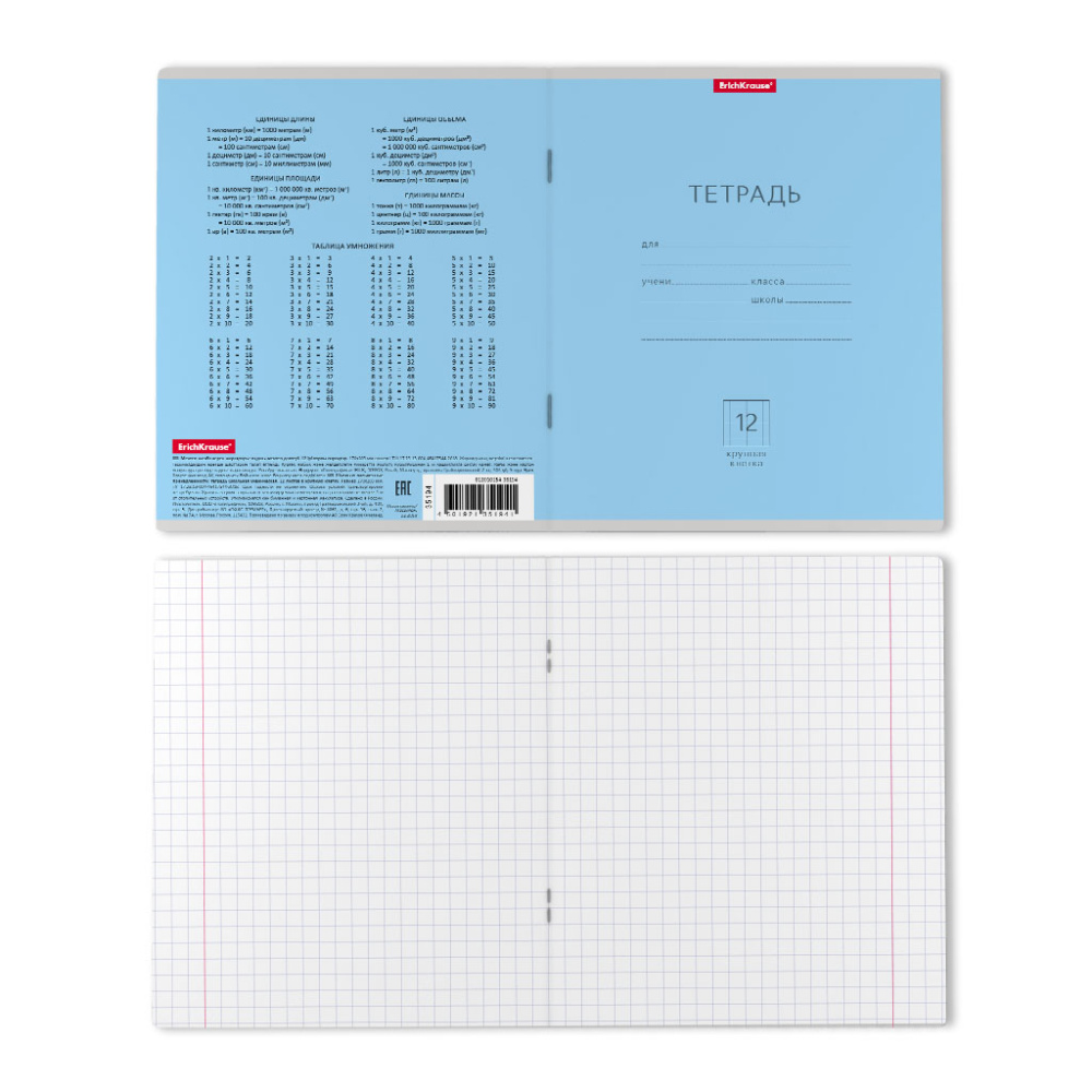 Тетрадь 12 крупная клет ErichKrause Классика голубая 35194