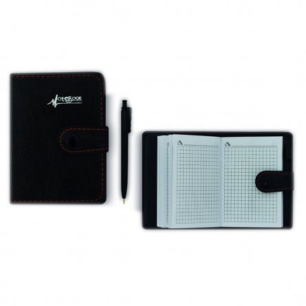 Бизнес- блокнот с авторучкой 80л клет 8,0см х 11,0см 7БЦ Alingar иск. кожа клапан на кнопке 4327