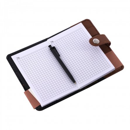 Бизнес-блокнот 70л клет 8.3см * 12,5см 7БЦ Alingar иск. кожа клапан на кнопке ручка коричневый 11373