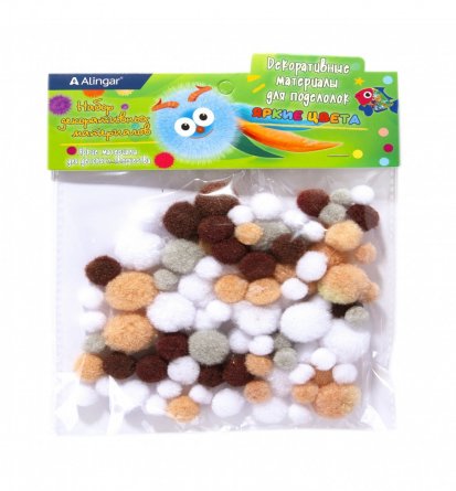 Набор для творчества пушистые помпоны 80шт Alingar Коричнево-бежевые цвета (корич,беж,белый) микс пакет с европодвесом9035