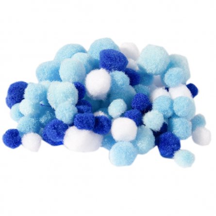 Набор для творчества пушистые помпоны 80шт Alingar Морские цвета (син,голуб,бел) микс пакет с европодвесом9032