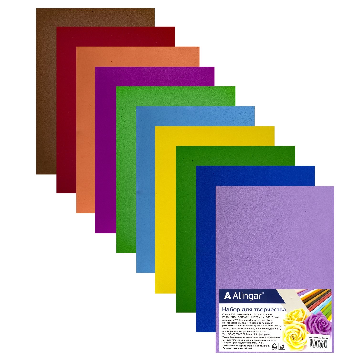 Фоамиран А4 1мм 10цв Alingar ассорти упаковка полиэтилен6577