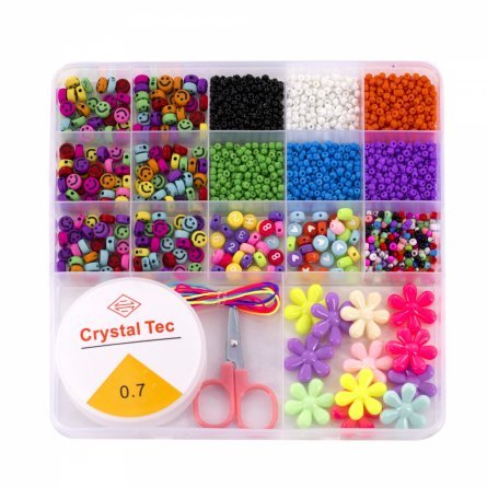 Набор для создания украшений-бусины и бисер Alingar 170х165х18мм»Shiny» 4вид.бус бисер 1х4,5м леска 1х1м нить ножницы пластик.пенал с европод12862