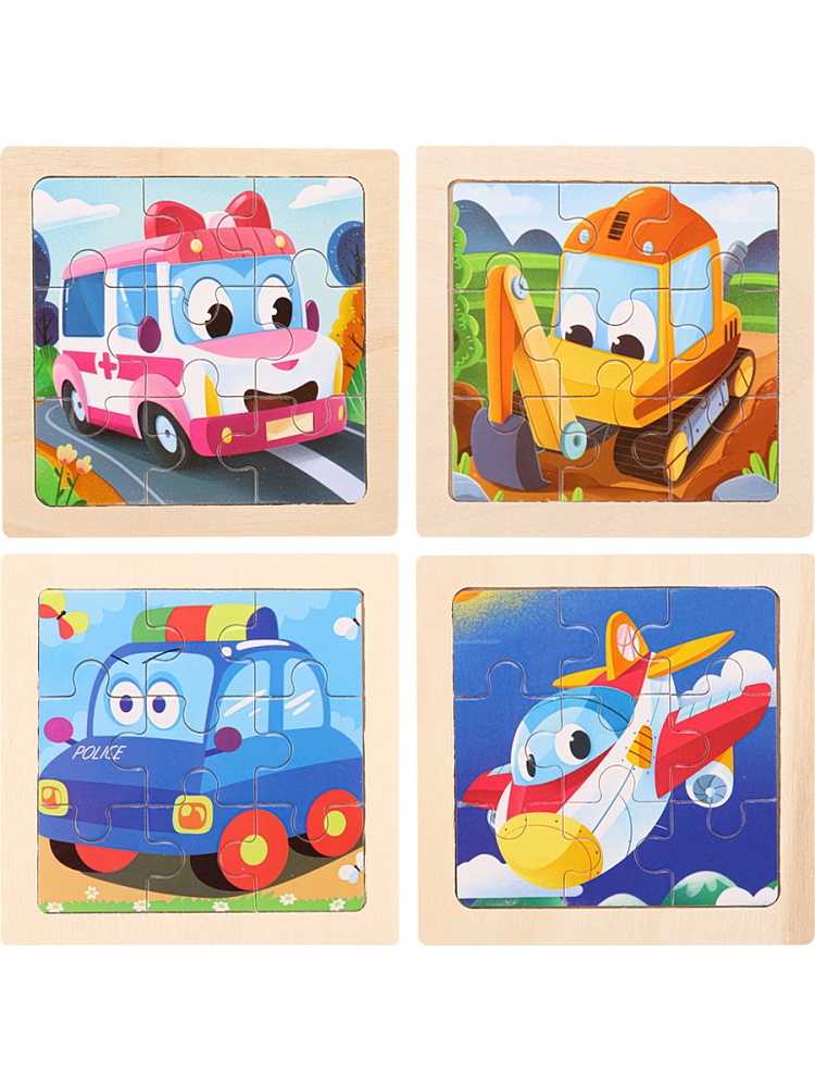 Пазл-рамка Деревянная игрушка Транспорт 11×11 см 4 шт в наборе арт.ИД-0212