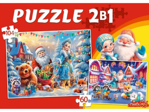 Пазлы 2 в 1 60 и 104 Новогодние развлечения арт. П60-104-7640