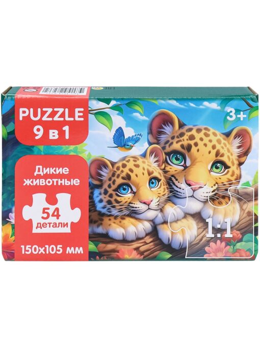 Пазлы 9 в 1 54 детали поле 15х10,5 см Дикие животные арт. П54-8237