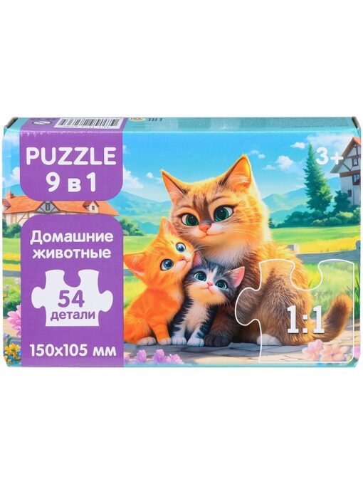 Пазлы 9 в 1 54 детали поле 15х10,5 см Домашние животные арт. П54-8236