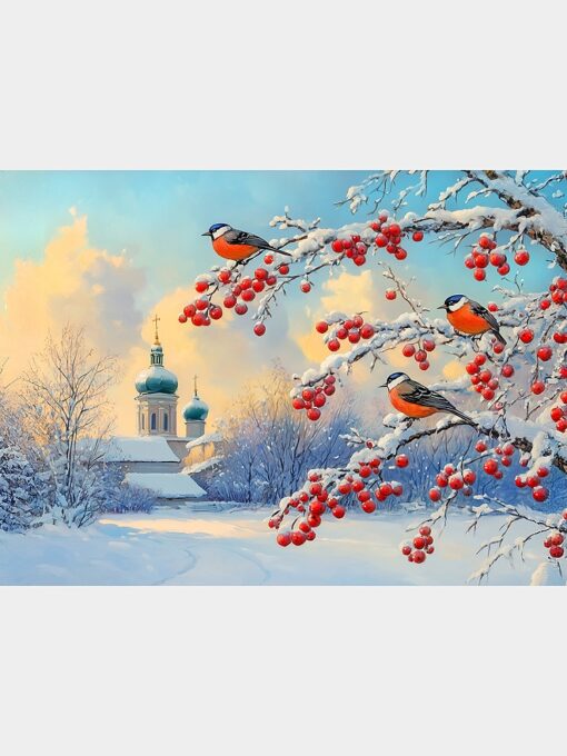 Холст с красками 22х30 см по номерам в коробке (16цв.) Деревенский пейзаж (арт. ХК-0505)