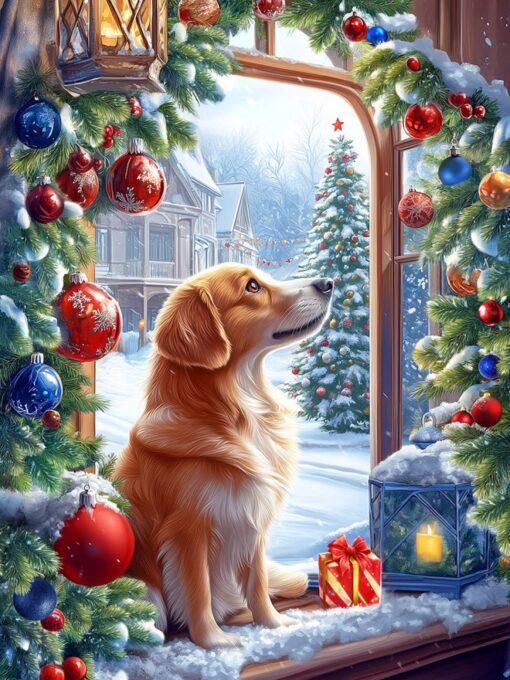 Холст с красками 30х40 см по номерам в коробке (30цв.) Пёсик ждёт Новый год (арт. ХК-0521)