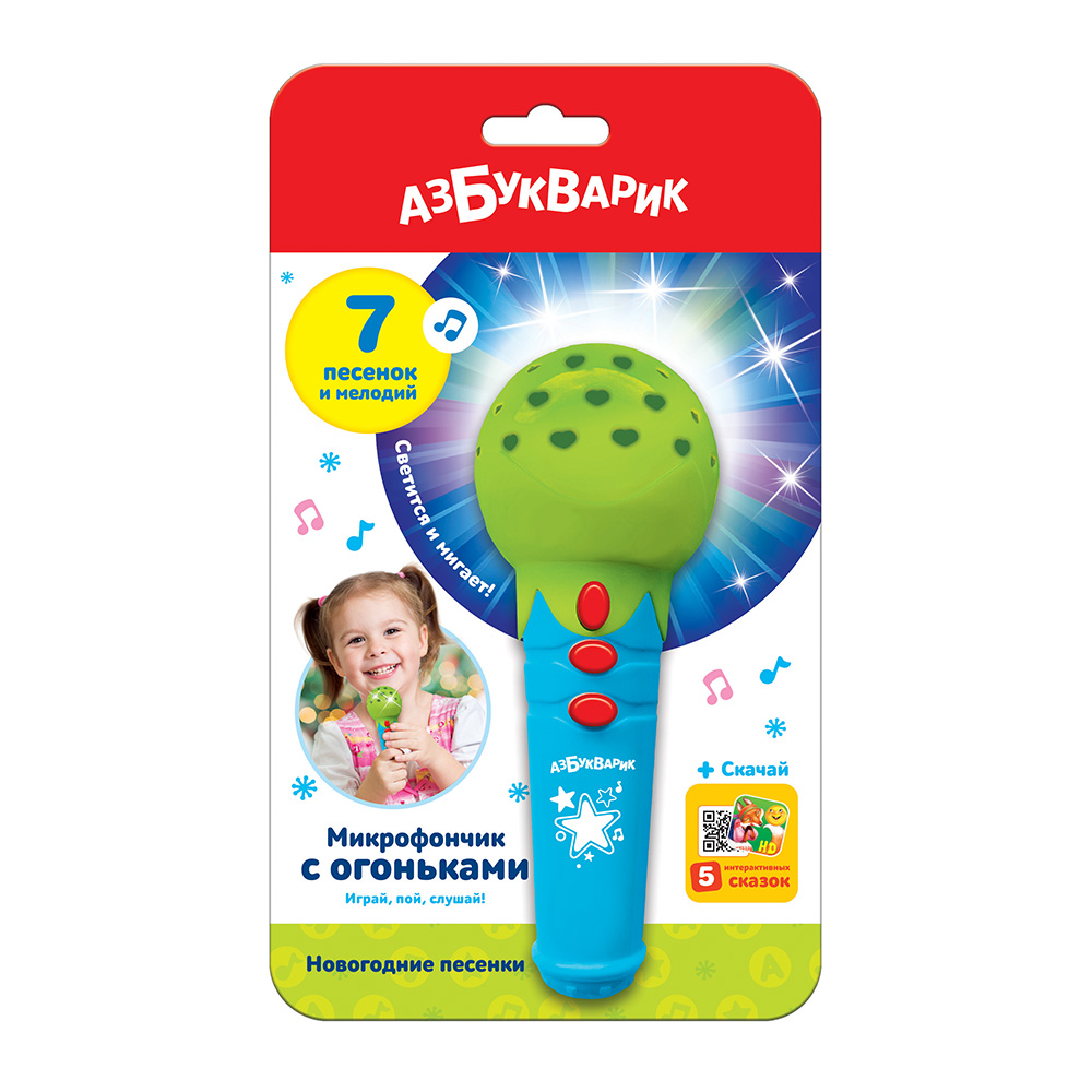 Яркий микрофончик порадует малышей новогодними песенками и праздничными огоньками! Нажимай на кнопочки – слушай детские хиты («В лесу родилась ёлочка», «Кабы не было зимы»), русские народные песни («Ты мороз, мороз, мороз», «Топ-топ, топотушки», «Валенки»), зажигательные мелодии («Ёлочка», «Рождественская песенка»). Подпевай и танцуй, а микрофончик будет светиться под музыку!