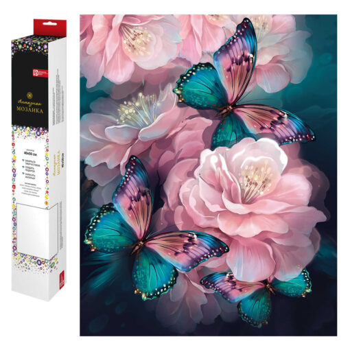 Алмазная мозаика арт. 68642 / 50 БАБОЧКИ В ЦВЕТАХ, размер: 40*50 см, (22 цветов страз, холст с напечатанной картиной, покрытый клеевым слоем и защитной пленкой, пакеты со стразами, стилус, лоток для страз, силикон для страз, клей, пинцет металлический, схема, дополнительные пакеты с zip-молнией, стикеры для нумерации zip-пакетов в комплекте, форма страз: круглая, тип выкладки: полная, картонная коробка с европодвесом)