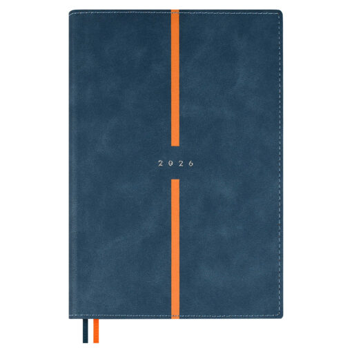 Ежедневник датированный 2026 ESCALADA, А5, 176 л., арт. 70264/ 15 ЛЕЗЕРЕТТО СИЗО-СИНИЙ (кожзам: 146×211 мм, мягкий переплёт, материал обложки: искусственная кожа «Лезеретто»; декор: тиснение фольгой, печать шелкографией в одну краску; способ крепления блока: ниткошвейный; вн. блок: 176 л., кремовый офсет 70 г/м², печать в две краски (клетка), справочный материал: есть; перфорация углов блока: нет; отделка среза: окрашивание пантоном; закладка/-и: два ляссе; каптал: есть; форзац: печать пантоном; персонализация возможна: да; индивидуальная упаковка: промостикер + ПЭТ-пакет)