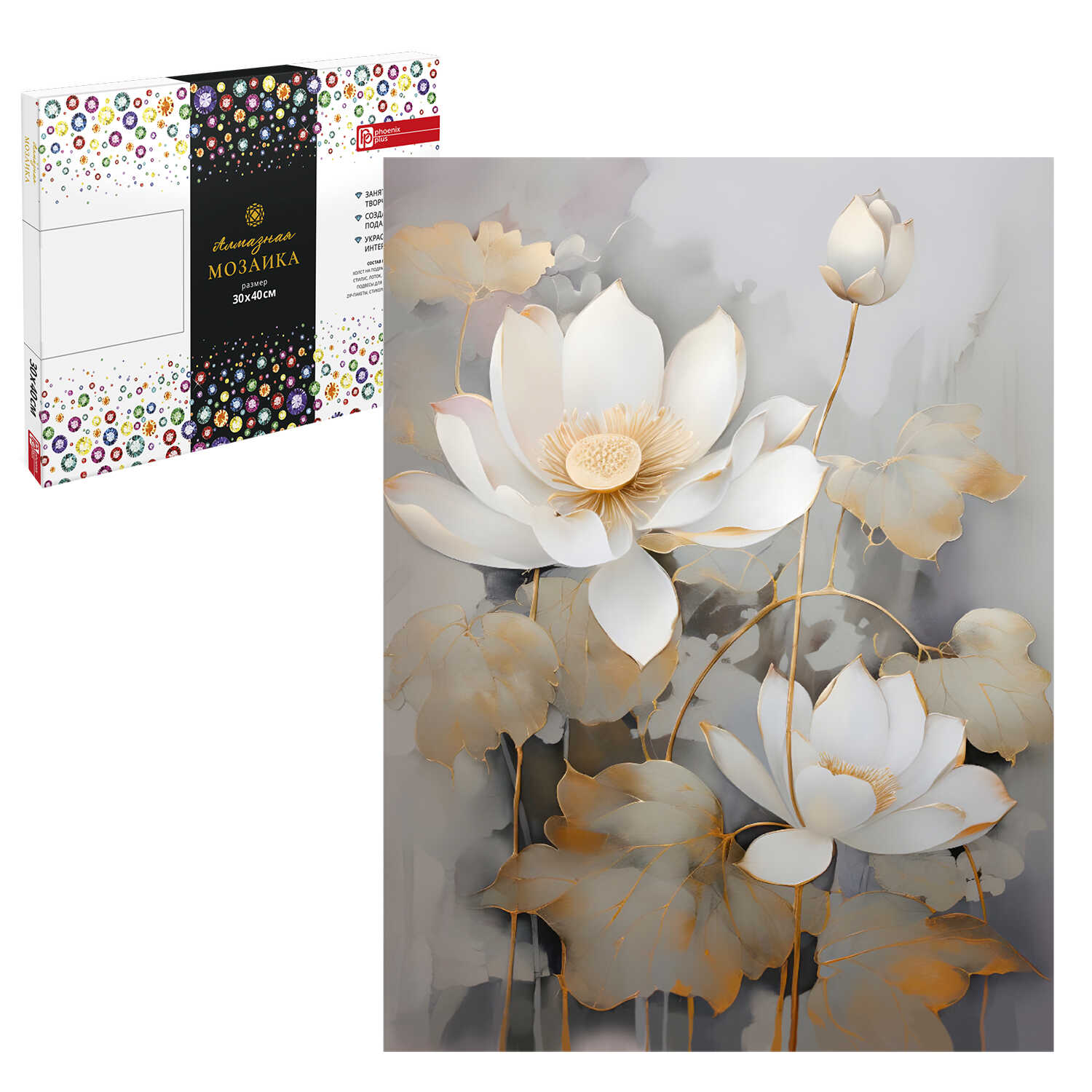 Алмазная мозаика арт. 68639 / 25 ЦВЕТОК ЛОТОСА, размер: 30*40 см, (24 цветов страз, холст на подрамнике с напечатанной картиной, покрытый клеевым слоем и защитной пленкой, пакеты со стразами, стилус, лоток для страз, силикон для страз, клей, подвесы для подрамника, пинцет металлический, схема, дополнительные пакеты с zip-молнией, стикеры для нумерации zip-пакетов в комплекте, форма страз: круглая, тип выкладки: полная, картонная коробка)