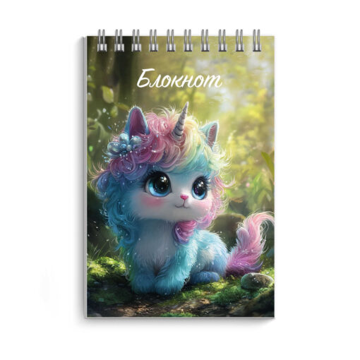 Блокнот, А7, 40 л, арт. 72781 МАЛЕНЬКИЙ ЕДИНОРОГ / Блок — белый офсет 60 г/м², клетка, гребень по короткой стороне, УФ-лак выборочный с глиттером,