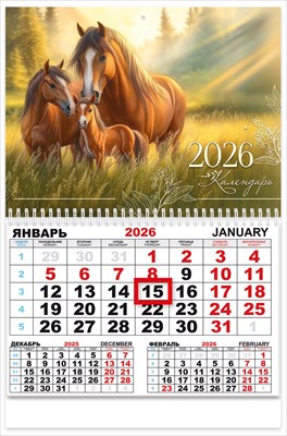 Календарь квартальный одноблочный 2026 Лошади 1299