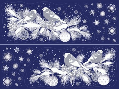 Новогодние наклейки на окна А1 Новогодний лес 89015