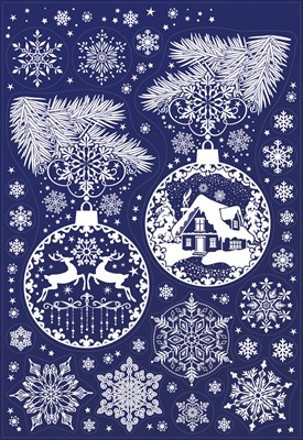 Новогодние наклейки на окна А3 Снежинки и новогодние игрушки 1207