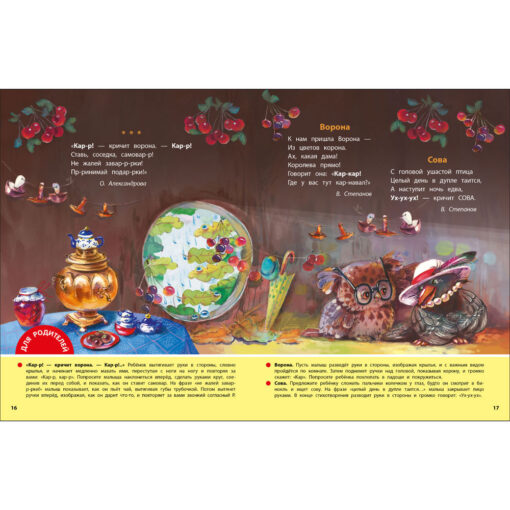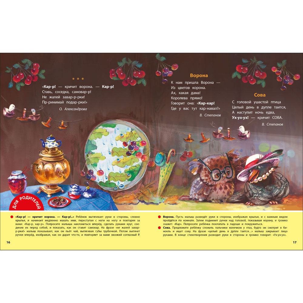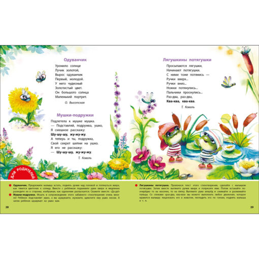 иллюстрации удержат внимание малыша. Для каждого стихотворения логопед Юлия Ольховская подготовила рекомендации по работе с текстом. Это и звукоподражание, и повторы отдельных слов, и двигательные упражнения. Занимаясь с ребёнком, вы не только раскроете для него магию речи, но и разовьёте мелкую моторику и координацию, расширите словарный запас и улучшите артикуляцию.