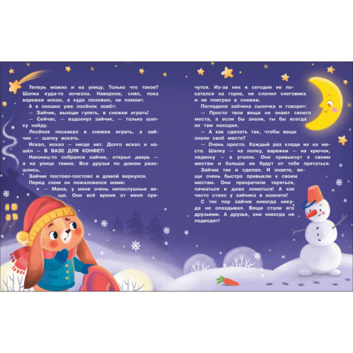 Это детская книга Татьяны Коваль для серии “Счастливое детство” для непослушных детишек. Оказывается, зверята бывают такими же непослушными, как девочки и мальчики! Вот, например, один заяц никогда не клал вещи на место, а другой – совершенно не умел выбирать себе друзей. Бельчонок не довёл до конца ни одно дело, а лягушонок очень плохо кушал. Интересно узнать, что с ними случилось? Тогда скорее открывай нашу книжку. И может быть, тебе больше никогда не захочется быть непослушным. Сказка – ложь, да в ней намёк!