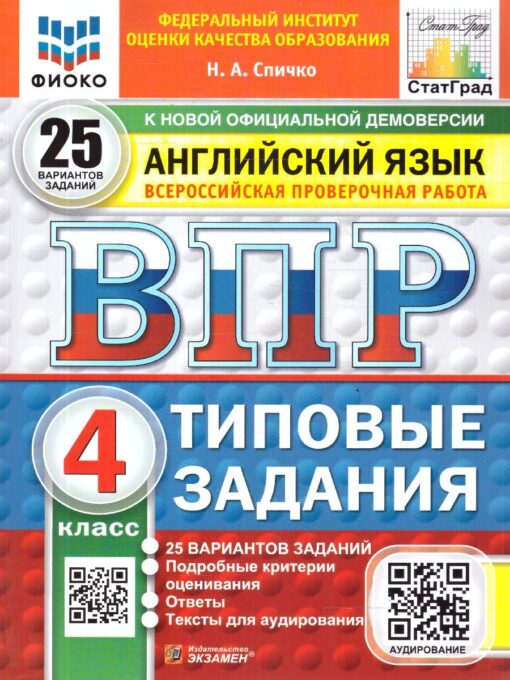 ВПР. ФИОКО. СТАТГРАД. АНГЛИЙСКИЙ ЯЗЫК. 4 КЛАСС. 25 ВАРИАНТОВ. ТЗ. ФГОС НОВЫЙ + АУДИРОВАНИЕ