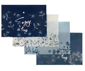 Папка-конверт на кнопке А4 Цветы пластик, блестящая в асс DM-141