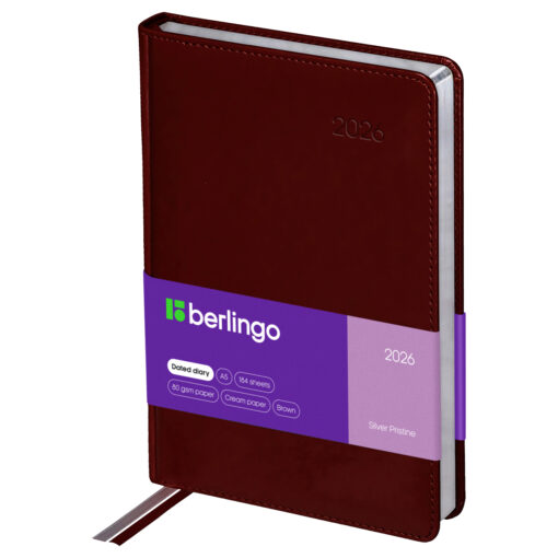 Ежедневник датированный 2026 А5 184л кожзам Berlingo «Silver Pristine» сер. срез коричневый 82504