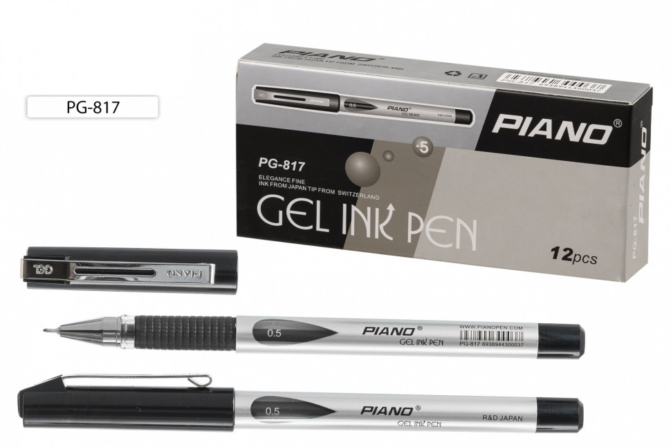 Ручка гел син 0,5мм «Piano» PG-817 серебристый корпус резиновый рефлённный держатель цветной колпачок с метал. клипом чернила-Япония
