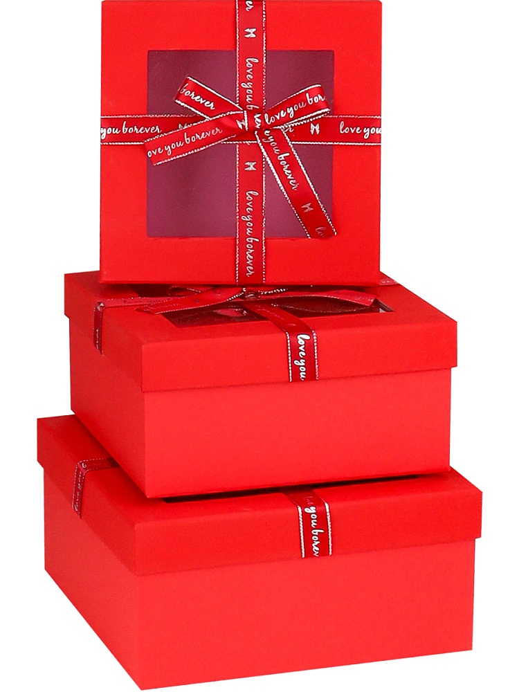 Набор коробок квадратных с бантом 3 в 1 Красные (19*19*9, 17*17*8, 15*15*7см КОР-7672