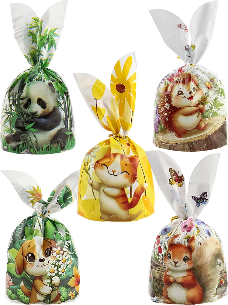 Пакет подарочный Набор 35 шт. 5 дизайнов Забавные зверята завязки в комп-те ППК-7658