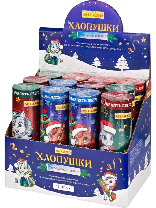 Хлопушка с предсказаниями поможет создать отличное настроение и атмосферу настоящего веселья на любом празднике! Выстрел фольгированными конфетти очень эффектно смотрится на фото и видео! Хлопушка не является пиротехникой, она полностью безопасна при соблюдении инструкции на упаковке. 4 дизайна. В шоубоксе. Собственная разработка. Наполнение: фольгированный серпантин. Размер: 15 см.