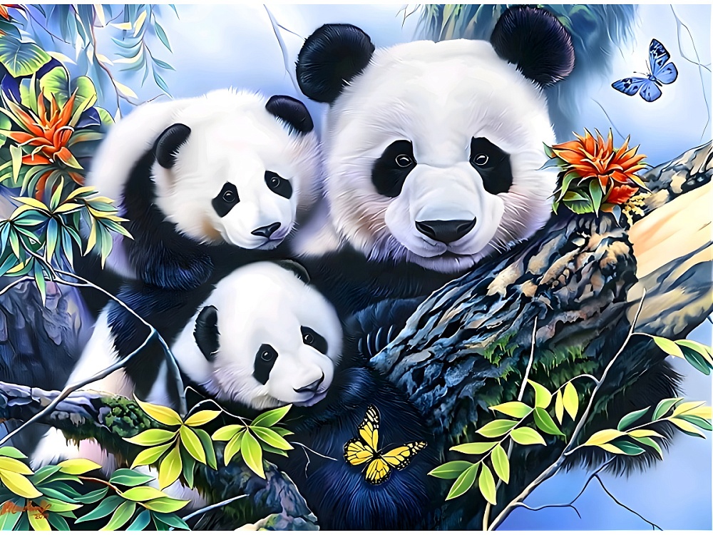Алмазная мозаика (класс.) 30х40 см, с подр., с полн. заполн. (30цв) Семья панд НД-0530