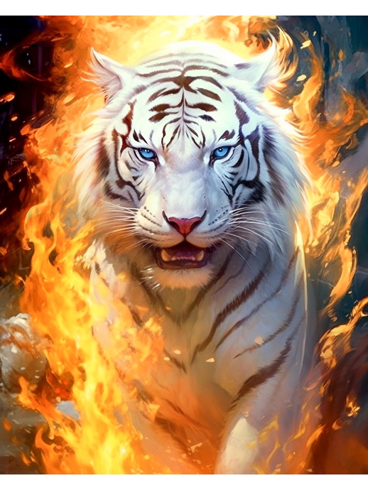 Алмазная мозаика (клас.) 40х50 см, с подр.,с част. заполн. (30цв) Белый тигр в огне НД-0592
