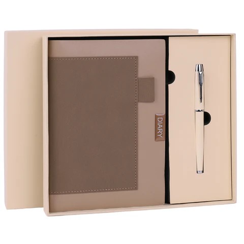 Ежедневник в наборе с ручкой А5 144×210мм BRAUBERG Style под кожу, 160л, бежевый, 116861