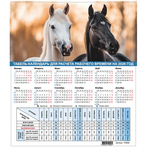 Календарь-табель на 2026 год с рабочими и выходными днями, А4 195х225мм, STAFF, Символ года, 118506