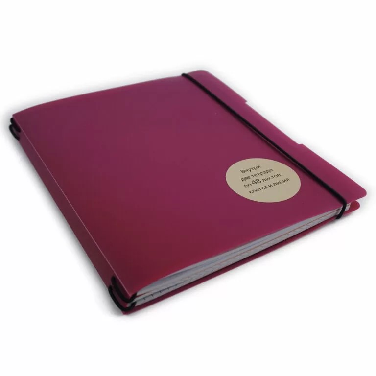 DoubleBook — это комплект из двух тетрадей А5 по 48 листов. Система крепления на резинках позволит в любое время сменить тетради. Это особенно удобно для школьников и студентов – нужная информация всегда будет грамотно структурирована.Прочная пластиковая обложка не даст листам порваться и помяться, а также защитит их от влаги. Фиксирующая резинка позволит тетради всегда оставаться закрытой в сумке или рюкзаке. Внутренний блок представлен офсетной бумагой плотностью 70 гр./м2 в клетку и линию.