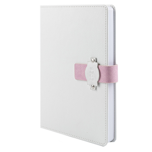 Ежедневник датированный 2026 А5 176л БОЛОНЬЯ белый+розовый хлястик застежка-хлятик другого цвет тв арт.310160