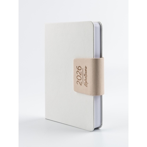 Ежедневник датированный 2026 А6+ 176л МИЛАН белый+ бежевый клапан декорирован магнитным клапаном тв арт.310130
