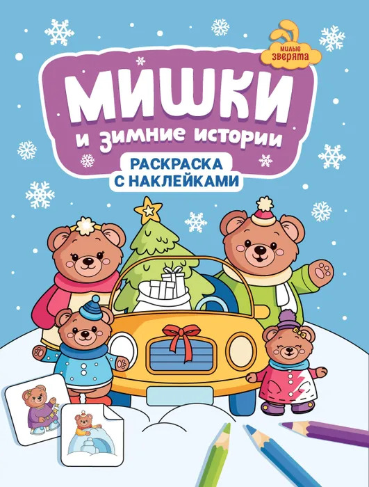 Книжка-раскраска с наклейками Мишки и зимние истории А4 /НОВИНКА/